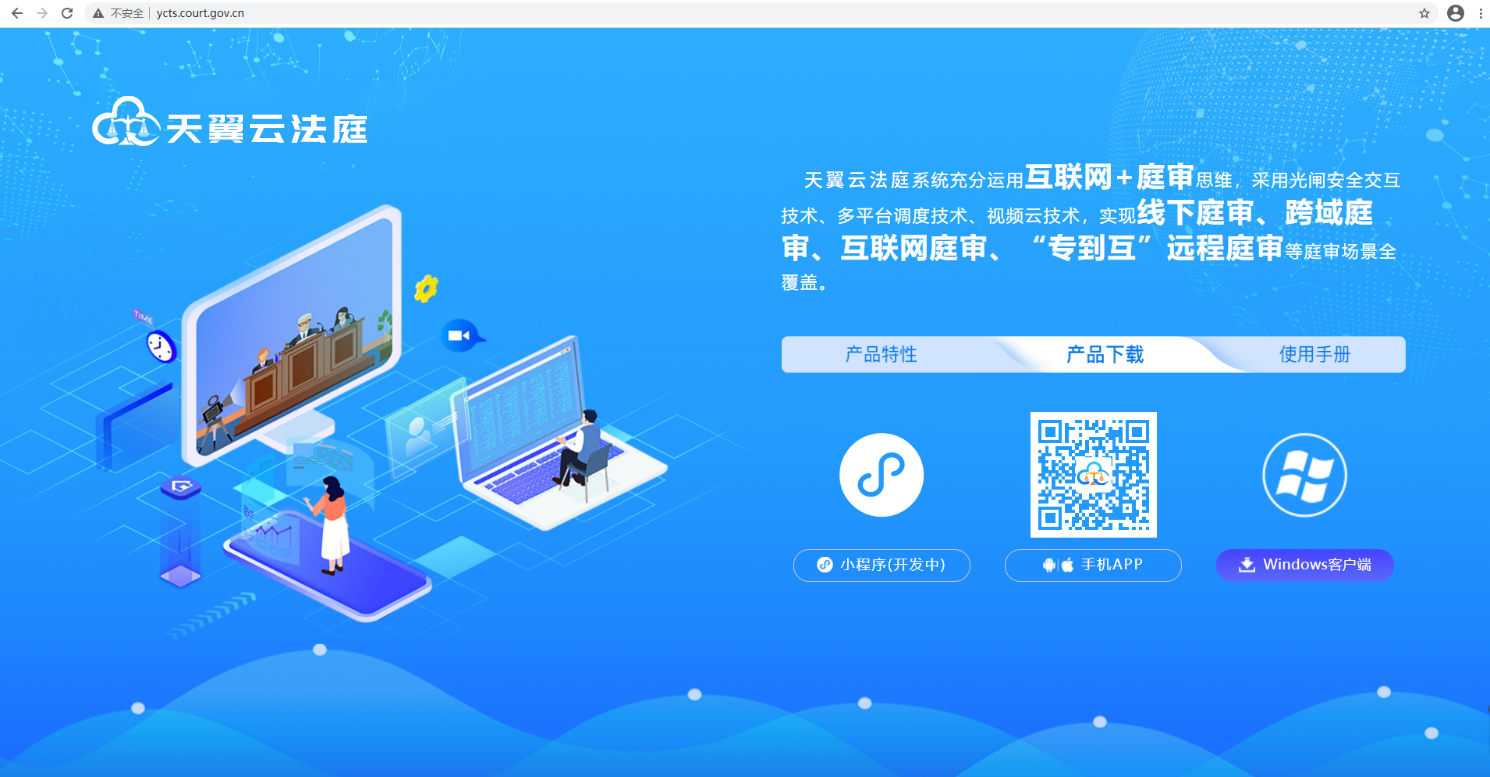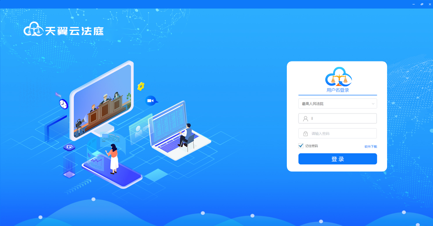 一、鼠标双击电脑桌面上客户端软件快捷方式“天翼云法庭庭审(当事人端)”。