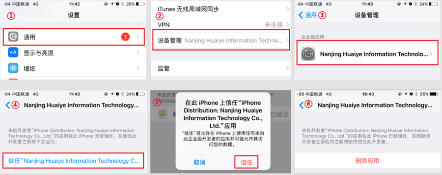 未受信任的企业级开发者,安装完成的app在使用前需要先进行授信(以下以IOS 10为例):