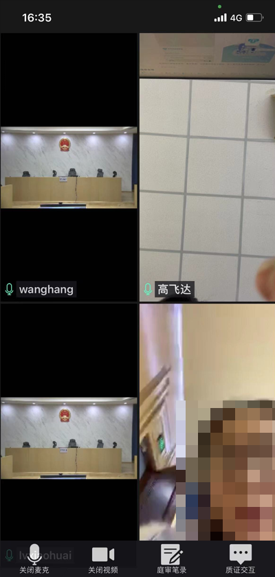 双击每路图像,均可放大显示。如庭审笔录、法官图像等,但反应速度取决于当事人手机和网速,请勿反复双击。