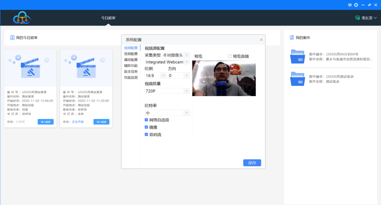 • 点击“前后”可以切换前置或者后置摄像头。庭审过程中因电话呼入导致视频采集中断,可通过切换前后摄像头,恢复视频画面。