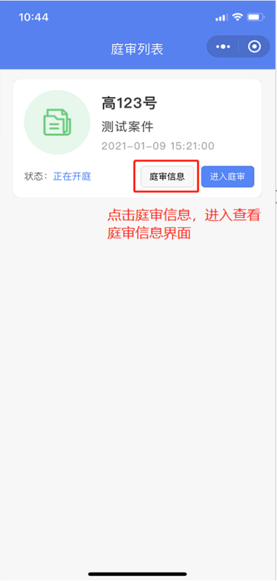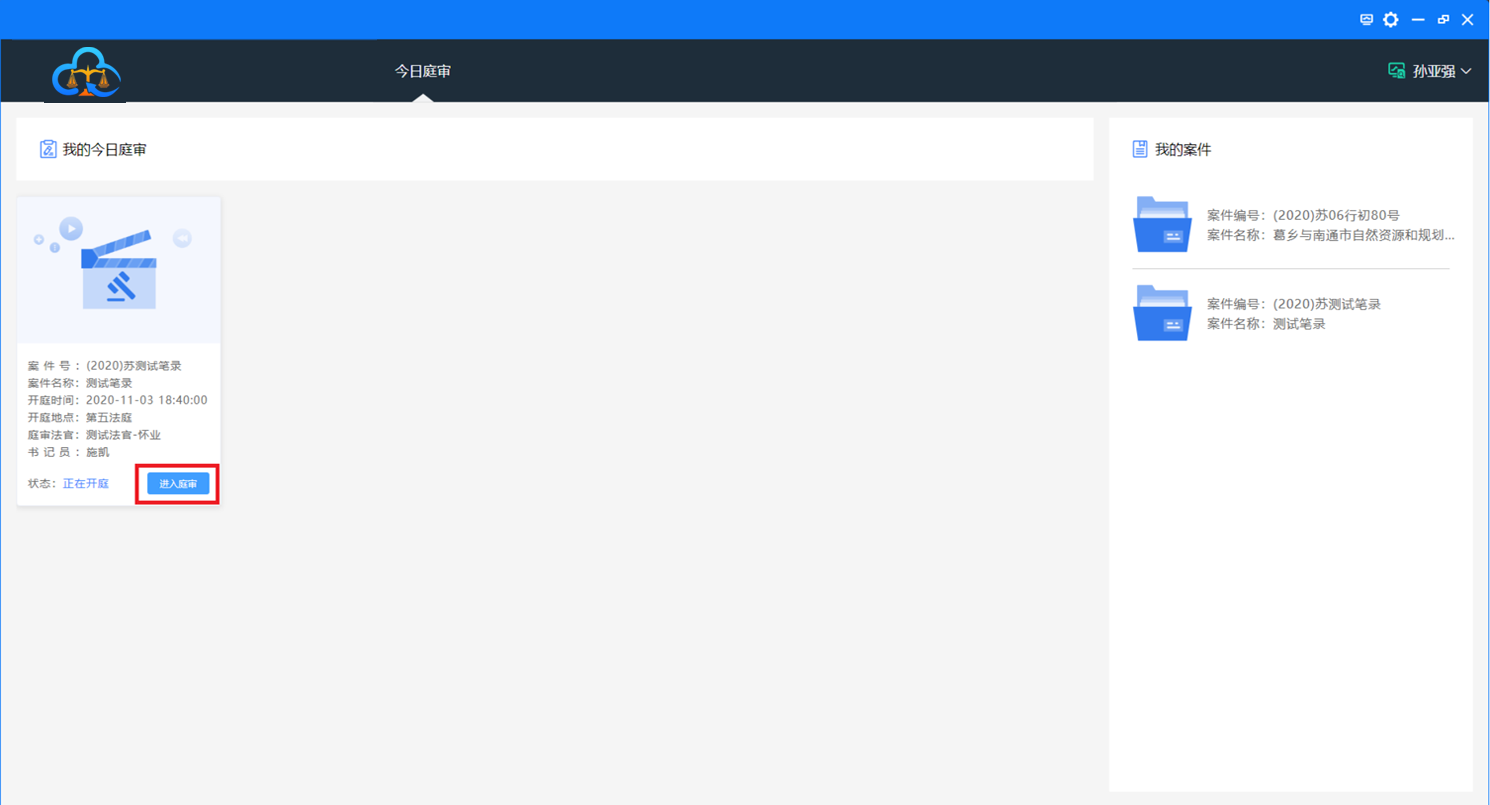 点击:进入庭审按钮,如下图: